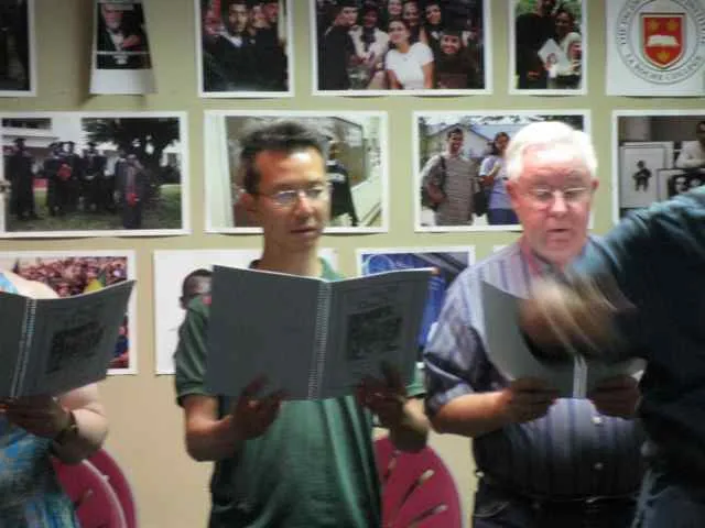 Eric taught voice class. There was a good balance of men and women. He handed us spiral-bound books of musical selections.