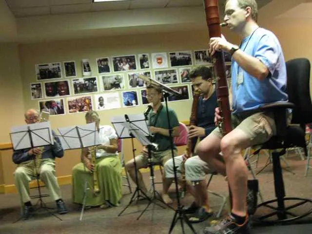 Immediately following the introduction was the first meeting of the all-workshop ensemble. We had substantial-looking spiral-bound books of ensemble music and I wondered how much of it we would go through!