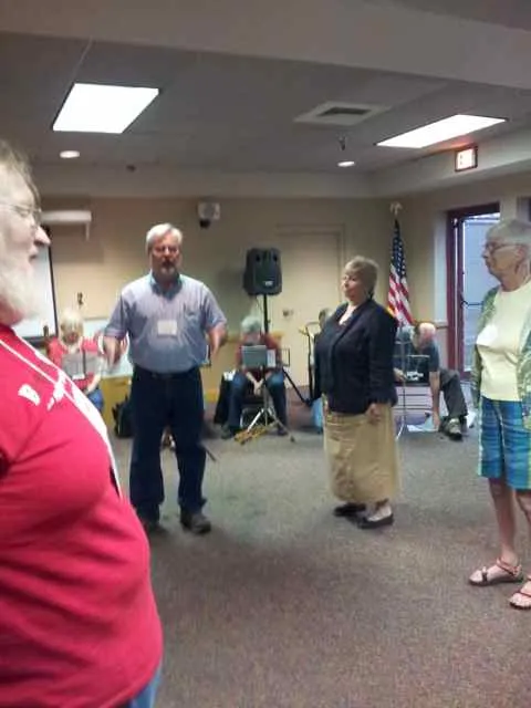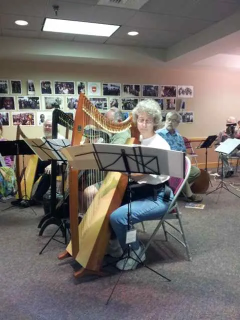 Helen hosted dinner at her place for both locals and out-of-towners arriving in town for the workshop. About a dozen of us showed up, and Abby came along. Since most of the attendees and instructors already knew each other for years (decades in most cases!), I found it a great way to start getting to know some people. Yes, this is an “old people” music camp. At age 42, I was by far the baby of the entire group. It seems that a good number of retired people attend the camp. Some of the instructors are younger than me, but it appeared that all the students were going to be older than me. I have to confess that last year, when I was “warned” that this was an “old people” camp, I had reservations, but the fact is, music is for any age, and interestingly, since getting involved in music last year, I have been consistently surprised and delighted by how younger-looking or younger-acting musicians tend to be.