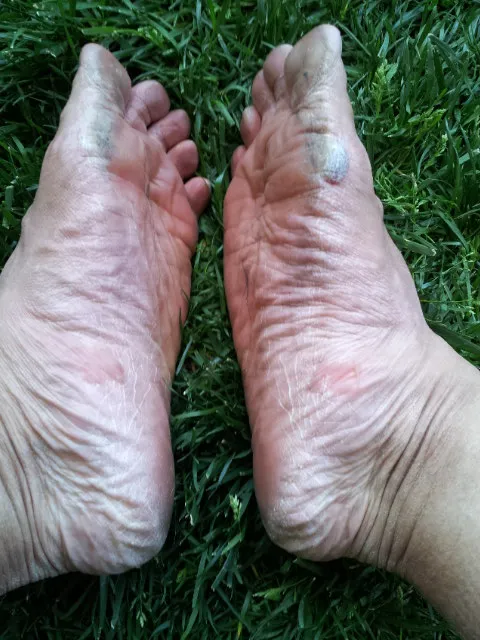 My feet were terribly sore. I got one blood-filled blister: