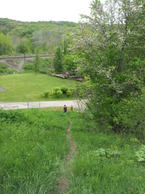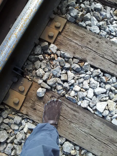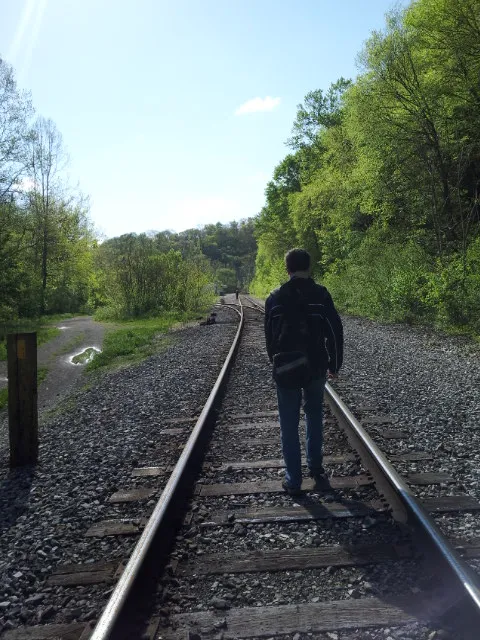 Out of the woods onto the railroad tracks (note that hiking in the reverse direction is tricky because it’s not well-marked where to get off the railroad tracks into the woods; John and I got lost the last time we did the reverse hike and had to backtrack!).