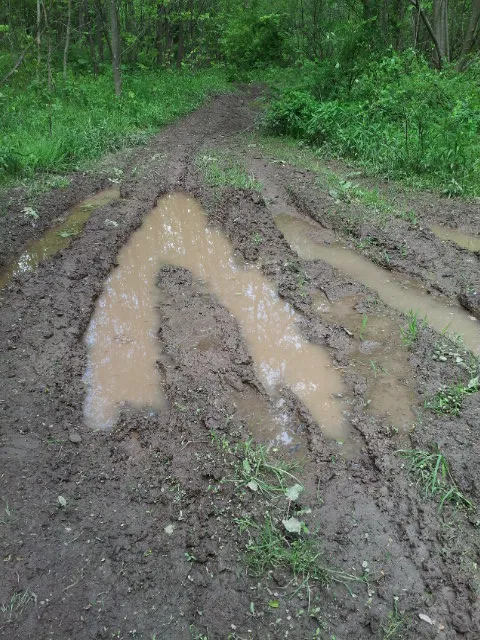 No fun at all hiking through these muddy ruts: