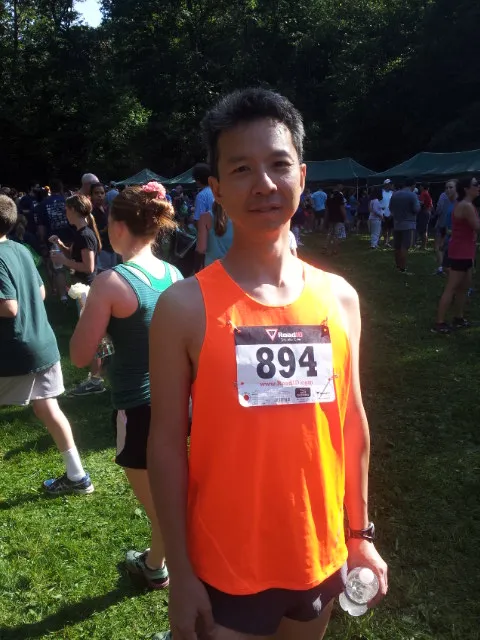 I decided that this was the race in which I debut my new orange running singlet, to replace my over-decade use of a blue singlet that Abby has gotten very annoyed with: